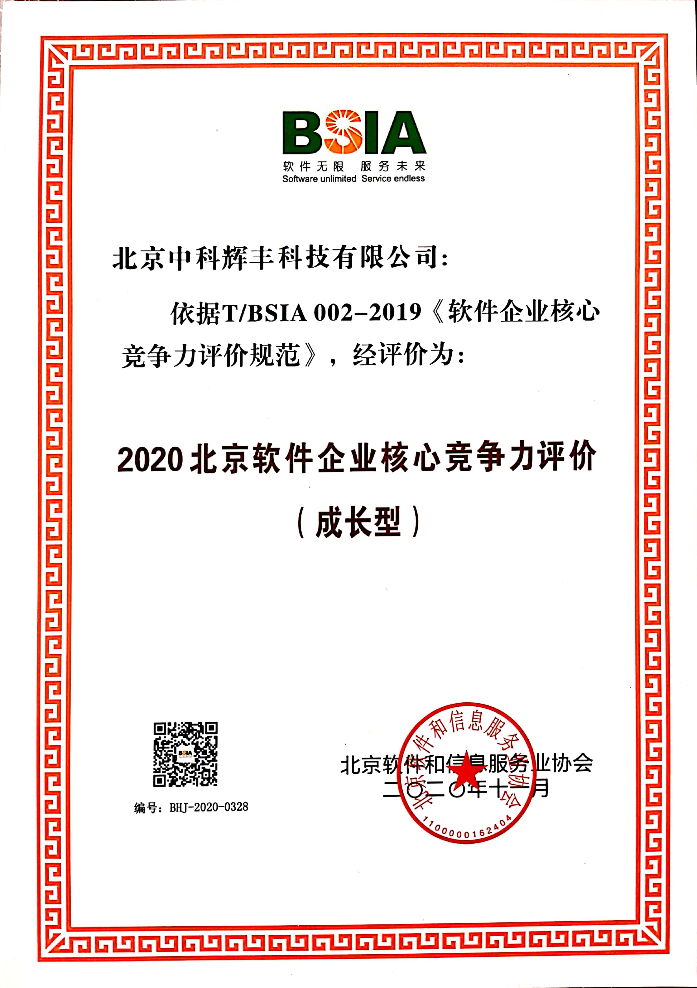 祝賀企業(yè)榮獲2020年北京軟件企業(yè)核心競爭力評價(成長型)企業(yè)名單